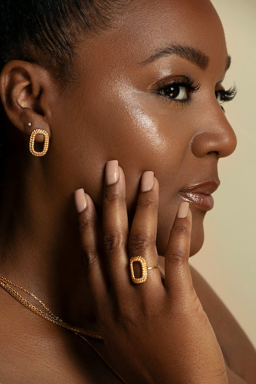 Upgrade your ear art stack with striking studs, statement hoops, delicate huggies and decadent drop earrings.